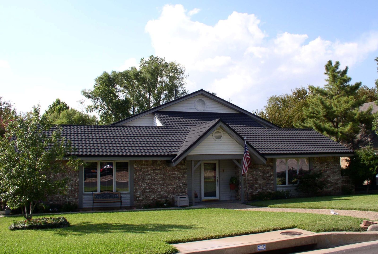 彩石金屬瓦是我公司最早開發(fā)的新型產(chǎn)品 ,以鈦錏鋅合金為低表面附上加拿大考瓷顆粒永不褪色,鈦錏鋅金屬不同于鋁鋅金屬易被空氣中的氧化,而粘合膠是強(qiáng)度最強(qiáng)的膠不同于水性丙烯